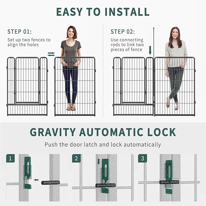 • 【Hammer Paint Finish】The surface of the pet fence adopts hammer paint process, which has excellent corrosion resistance, impact resistance and flatness. While protecting your pet from scratches, it can adapt to all kinds of extreme weather and is durable.