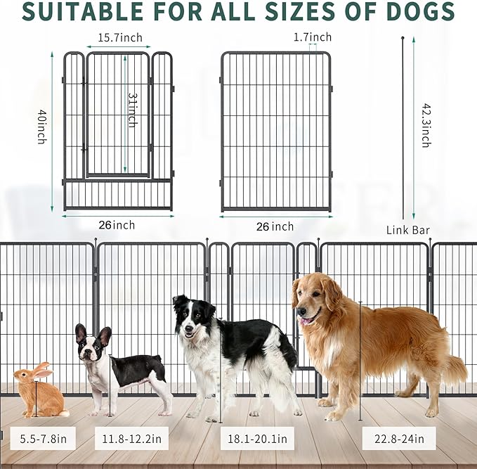 • 【Pets Ideal place】The size of gate of the pet fence is 40"H x 26"W. It is an ideal and safety place for large, medium and small animals.Suitable for indoor and outdoor.