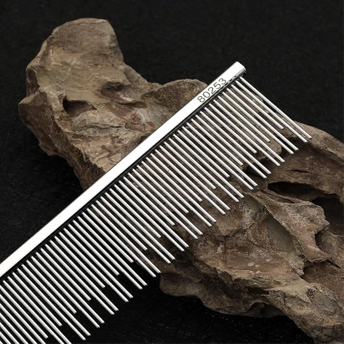 • 🐶STAINLESS STEEL COMB 6.1 in: Made of sturdy and corrosion-resistant stainless steel, this comb can reduce static electricity and will not fade over time. Built to last through multiple grooming sessions.
