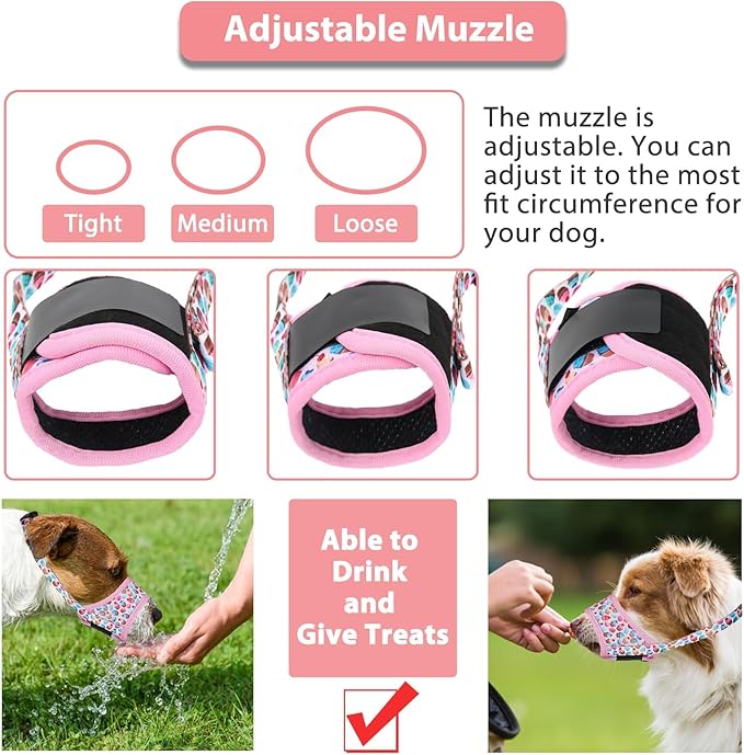 LUCKYPAW Dog Muzzle, Soft Dog Muzzles for Small Medium Large Dogs, Breathable Muzzles to Stop Biting and Chewing with Pattern, Allows Panting and Drinking (L-(Snout 7"-9½"), Pink Cake)