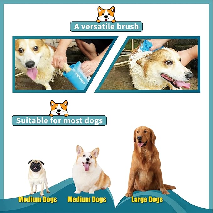 • 【High Quality Materials】The brush of the dog foot washer and 2pcs the adjustable dog shower brush are made of soft and skin friendly silicone material. Paired with 2 high-quality coral velvet super absorbent towels. can help you clean up your dog's muddy paws.