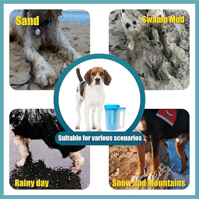 • 【Easy to Use Dog Feet Cleaner- Just these steps】 1. Pour clean water into a cup 2. put the dog's paws in the cup 3. rotate the cup for a while to remove the mud from the paws.Simple and easy to use, just rinse and keep on hand for next muddy encounter.