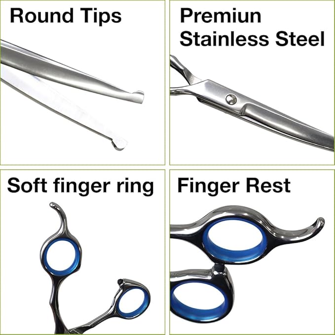 • Safety Guard with Round Tip: All the tips of 4 scissors are not sharpened to prevent poking your pet’s skin and you can cut their hairs calm and safely