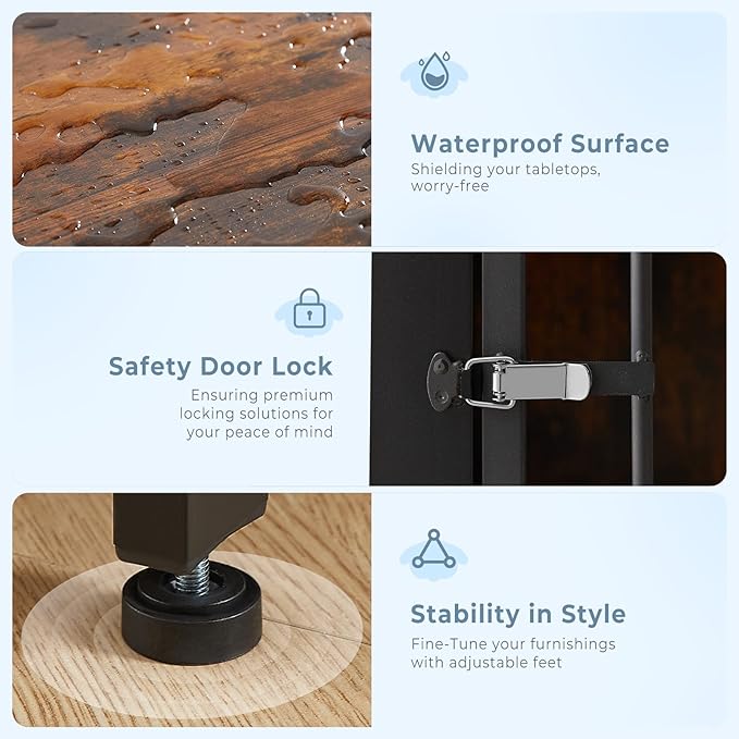 • 【With Two Rooms】Our large dog crate end table is designed with a removable divider that can keep two medium dogs and can also put dog food on the side; The divider can also be removed to accommodate a large size dog