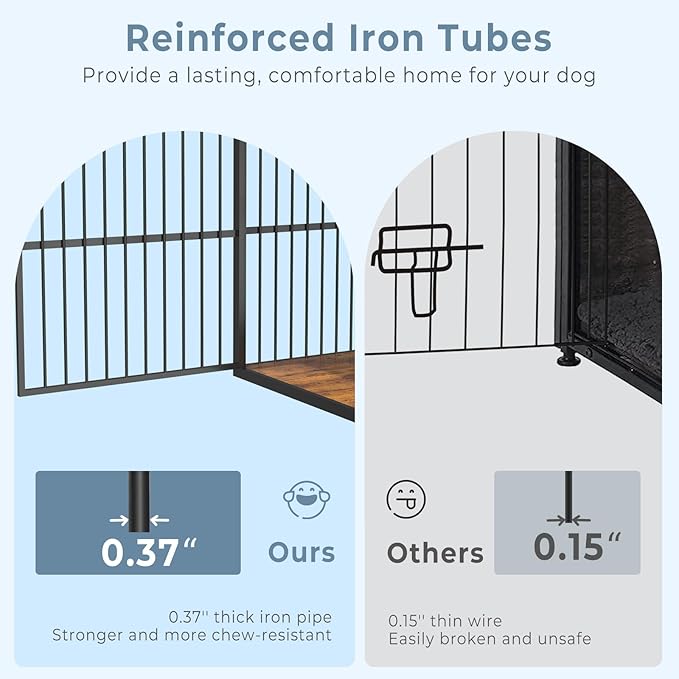 • 【Sturdy and Chew-Resistant】This dog crate furniture for 2 dogs is made of premium particle board and iron pipe, which is stronger and more chewy; It will accompany your dog throughout the growing stages