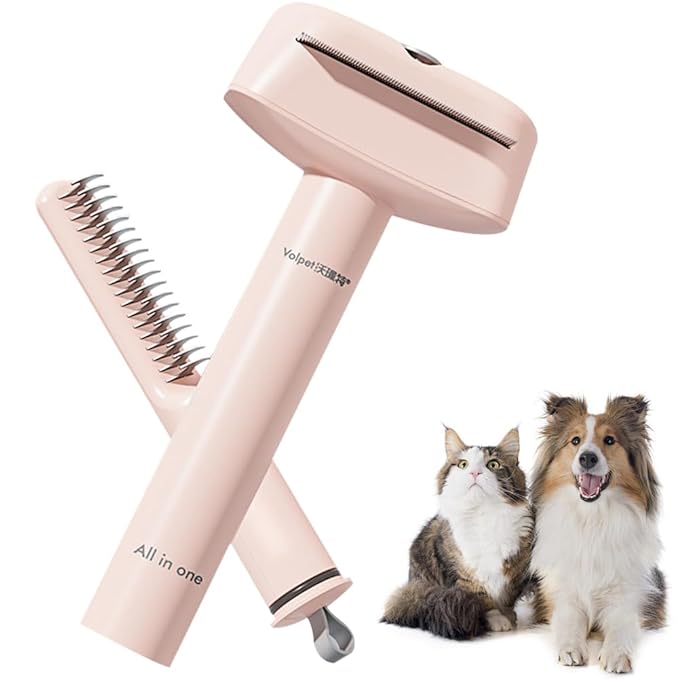 OLizee® 3-in-1 Multi-Function Pet Hair Comb Brush Heads Pet Care Tool for Tangled Knotted Loose Matted Hair Suitable for Long Short Hair Safe Skin-Friendly Washable Stainless Steel Comb Pink