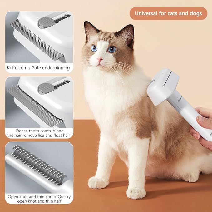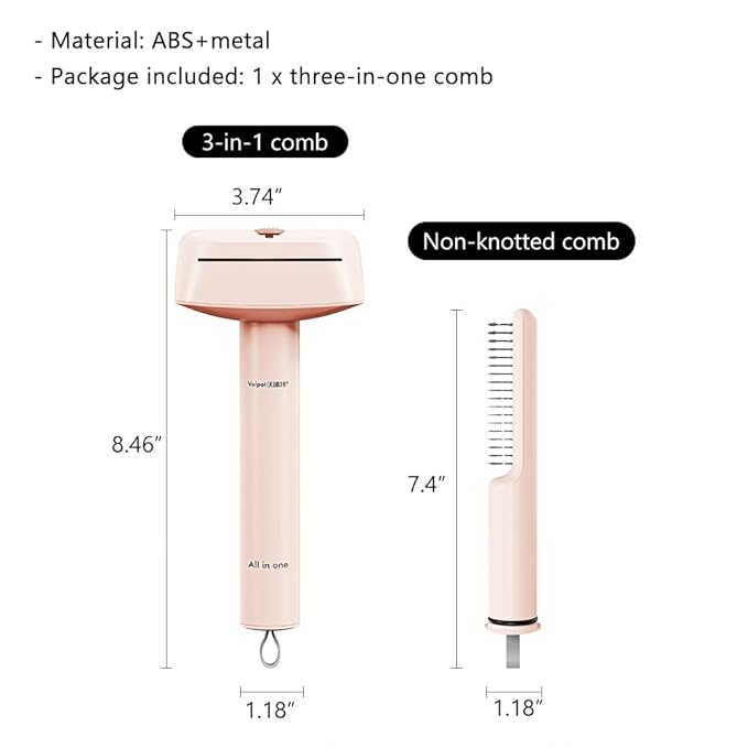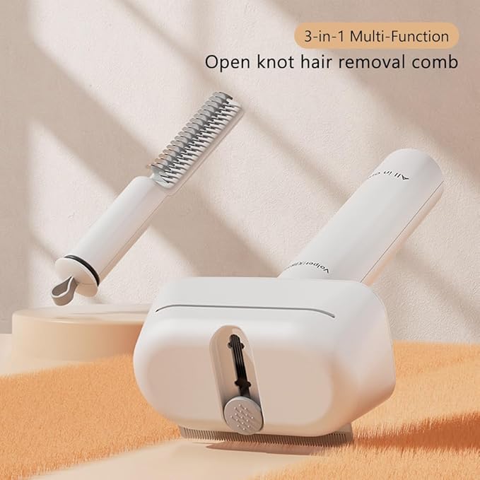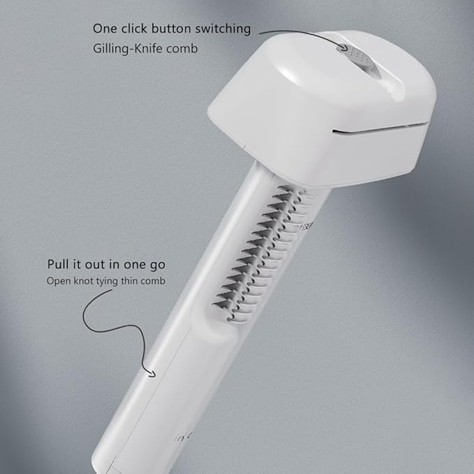 • MULTI-FUNCTION: Press the button at the top to push the one of the combs, which can clean dirty things and prevent pets from getting sick. Push the button to the other side and this comb can easily remove loose hair, more suitable for shorthair. Hold the bottom ring and pull gently to get a non-knotted comb. Long-haired pets will prefer this comb because it is an effective solution to the problem of their tangled hair. With the three functions, you don't need to buy extra hair removal tools
