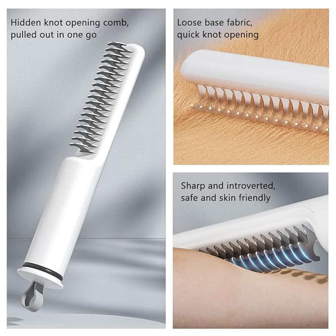 • CAREFUL PROTECTION: Our comb is specifically for the floating hair, bottom velvet and waste hair, will not cause the situation of cutting hair. To ensure the safety of your pets, the corners and edges of comb heads are round to prevent them from being scratched by sharp edges. Don’t use if there is already a wound on the skin. Besides, hiding design is also a form of protection. Please put the comb teeth inside when not in use to avoid accidents