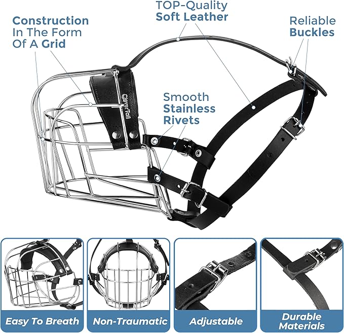 • Safe and Premium Materials: Handcrafted with genuine leather and sturdy, smooth steel, our cage muzzles for dogs ensures both safety and superior quality.