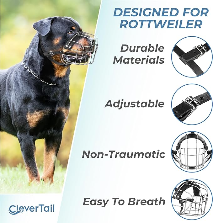 Extra Large Dog Muzzle for Rottweiler – XL Heavy Duty Rottweiler Muzzle – Metal Large Dog Muzzle for Barking and Biting for Rottweiler, Cane Corso, Mastiff and Other Large Breeds