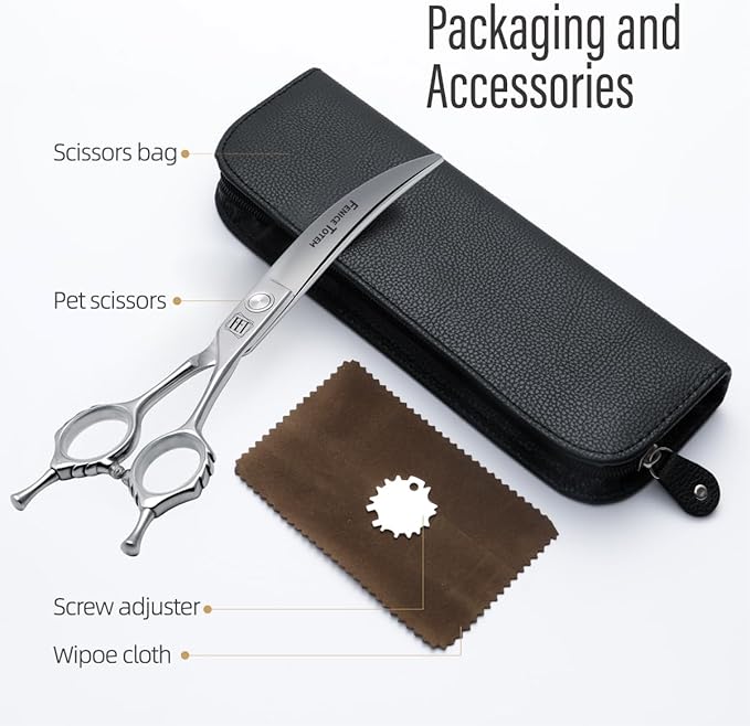 Dog Grooming Scissors: 7.5 inch Pet Curved Shears Made Of Japanese VG10 Advanced Stainless Steel Professional Grooming Scissors for Dogs Cats and Other Pets