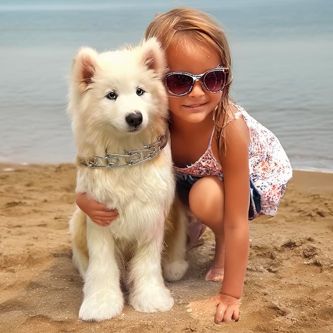 Silver Prong Pinch Dog Collar, No Pull Dog Collar Adjustable Quick Release Dog Training Collar with Quick Release Buckle for Small Medium Large Dogs (Silver, L)