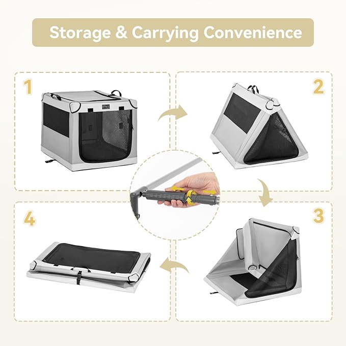 • 3 mesh doors of portable dog crate will be more ventilated, can provide your pets good view, reduce pet anxiety. What is more, you will no more worry about dog hairs flying everywhere.
