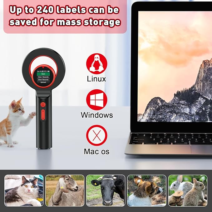 • 🐱[Widely Used and High Capacity: Save up to 240 tag information, and you can upload this information to computer via USB cable. Widely used for animal management, resource management, railway detection, etc. ]