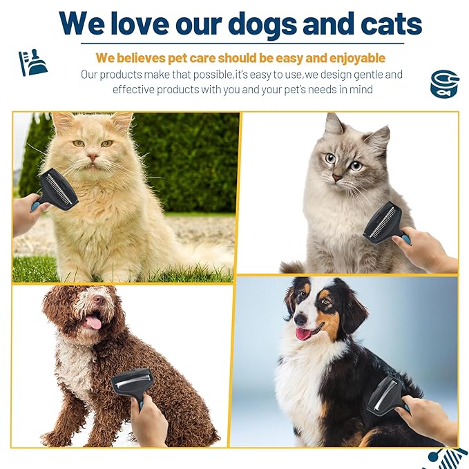 • Large Size Rake: The ake is perfect for medium and long-haired dogs and cats and other double coat pets. Wide side for easy dematting, dense side for deshedding.