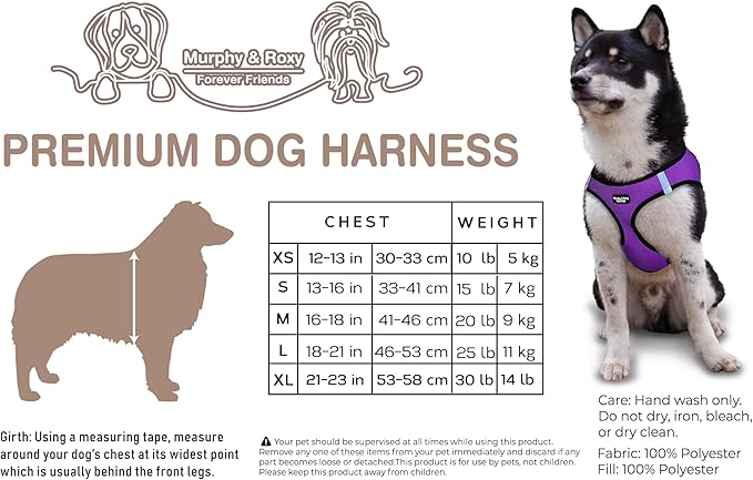 Murphy & Roxy No Pull Dog Harness for Medium Sized Dogs - Heavy Duty Dog Harness with Reflective Trim - Adjustable Dog Vest Harness for Walking - Comfortable Dog Accessories for Dogs - Purple, Size M