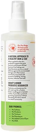 • Hydrates and Deodorizes - Keep your pet smelling fresh and feeling comfortable with Skout's Honor pet deodorizer spray, designed to hydrate and deodorize their skin and coat between washes.