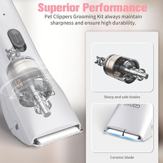 • 【Easy to Use & Clean】- Gooad cat grooming clippers is only 4.7 * 1.7 * 1.18 inches, cat hair trimmer is easy to grip.Lightweight, cordless and ergonomic design allows for super maneuverability and comfortably grooming experience. The blade part of dog clippers for grooming can be removed for cleaning and underwater cleaning.