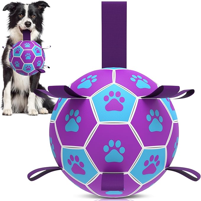 • ⚽Pump & Needle Adapter Included: The herding balls for dogs comes deflated. There's a needle point adapter and a pump inside as well while other items in the same market only include a ball needle. The soccer ball dog toy is 8 inches in diameter, perfect for large breeds, not for aggressive chewers.