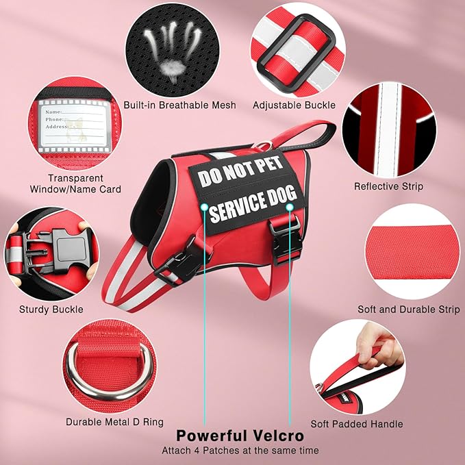 Service Dog Vest Harness+ID Tag+10 Patches,Metal Serivce Dog Tag&Reflective Emotional Support Dog Vest with Handle for Small Dogs,Easy Put On/Off for Training/Walking/Everyday Red S