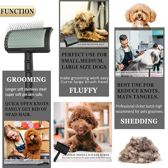 Slicker Brush for Goldendoodles - Gentle Soft Pins for Thick and Long Fur, Poodles Grooming, Fluff Removal, Detangling Shedding Hair, 25mm(1")