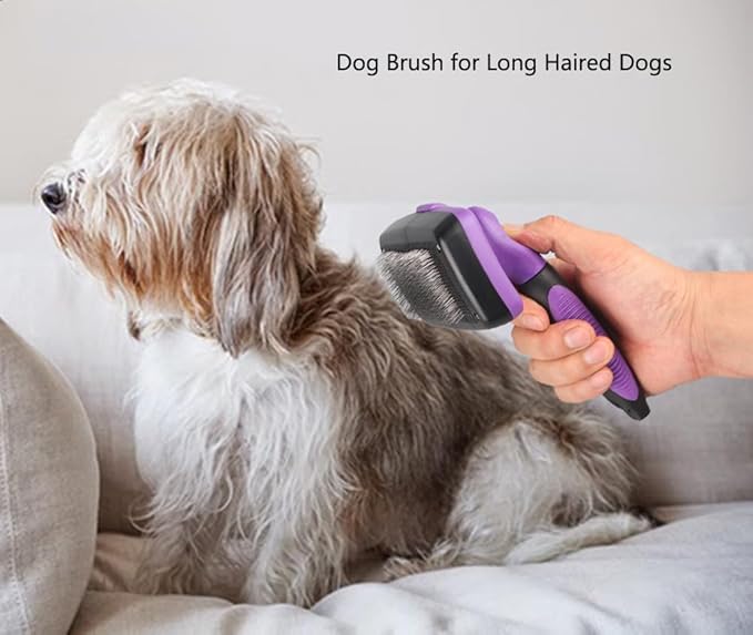 Self Cleaning Slicker Brush for Dogs Cats Brush for Shedding Grooming Brushes for Long Short Haired Pets (Purple)