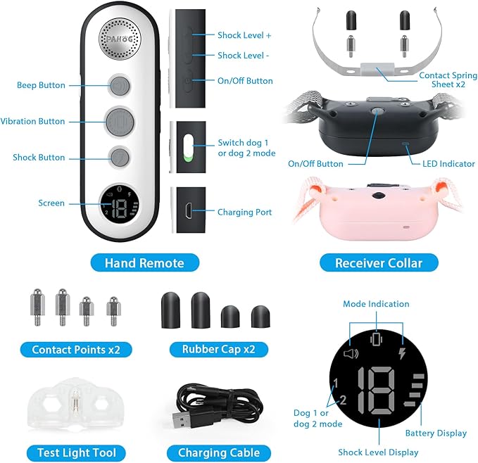 • 【3 Safe Modes Training Collar】Our PAHOG dog shock collar offers 3 safe and effective humane training modes: beep (standard), vibration (standard), safe shock (adjustable 1-16 levels). You can choose the right mode level to train your dog, correcting bad behaviors in time.