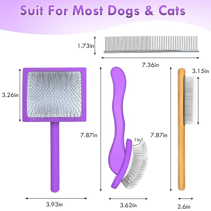 • [Friendly to Pet Skin and Human Hand] All tools are with rounded teeth soft to skin, no scratching and pulling. This set are all designed with ergonomic, anti-slip and durable handle. Enjoy a comfortable grip that helps prevent brushing fatigue.