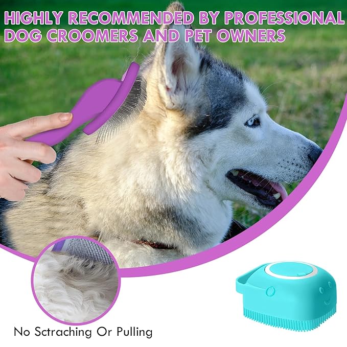 • [Professional Pet Grooming Kit] Effective brush with long, denser, and softer pins, 2-IN-1 detangling handle comb designed with long and short metal teeth groom top coat and undercoat at one time. Wide and narrow teeth comb for loose hair, dander & dirt trapped beneath fur.