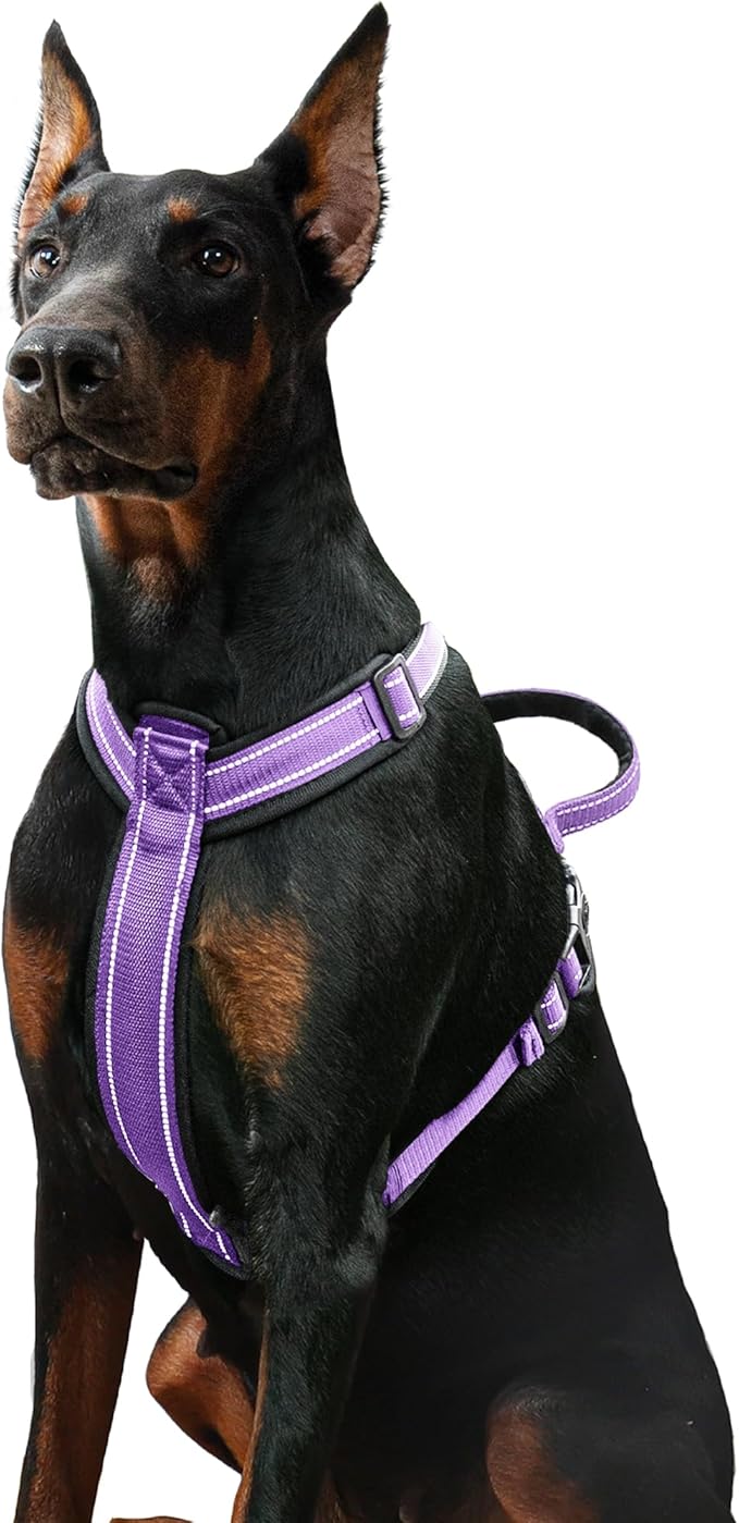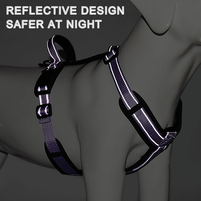 Patas Lague No Pull Dog Harness for Small Medium Dogs, Soft Adjustable Step in No Choke Dog Harness and Leash Set, Reflective Solid Dog Vest Harness with Buckle Lock, Purple L