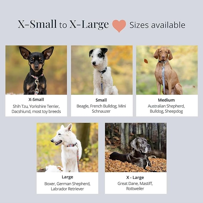 • MATCHING LEASH OPTIONS AVAILABLE: Complete your look with a matching dog leash. Sizes ranging from extra small, small, medium, large, and even xl dog collars to be paired beautifully with vibrant, comfortable leashes which are sold separately. Perfect for walks, hikes, and daily adventures!