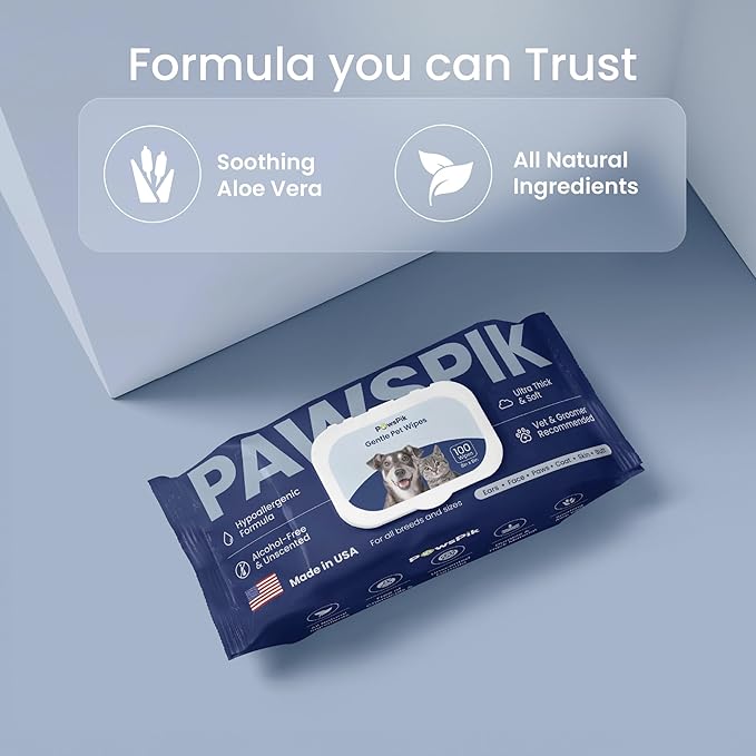 • [Formulated for Sensitive Skin]- Made with sensitive skin in mind, PawsPik dog wipes and cat wipes use a hypoallergenic unscented formula infused with all-natural ingredients and free of alcohol and parabens providing a gentle and soothing cleanse.