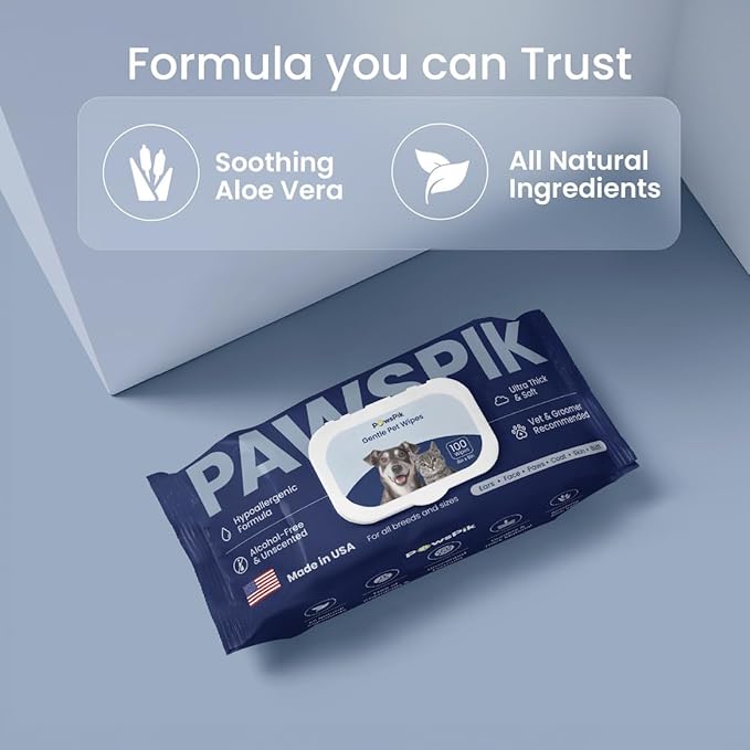 • [Formulated for Sensitive Skin]- Made with sensitive skin in mind, PawsPik dog wipes and cat wipes use a hypoallergenic unscented formula infused with all-natural ingredients and free of alcohol and parabens providing a gentle and soothing cleanse.