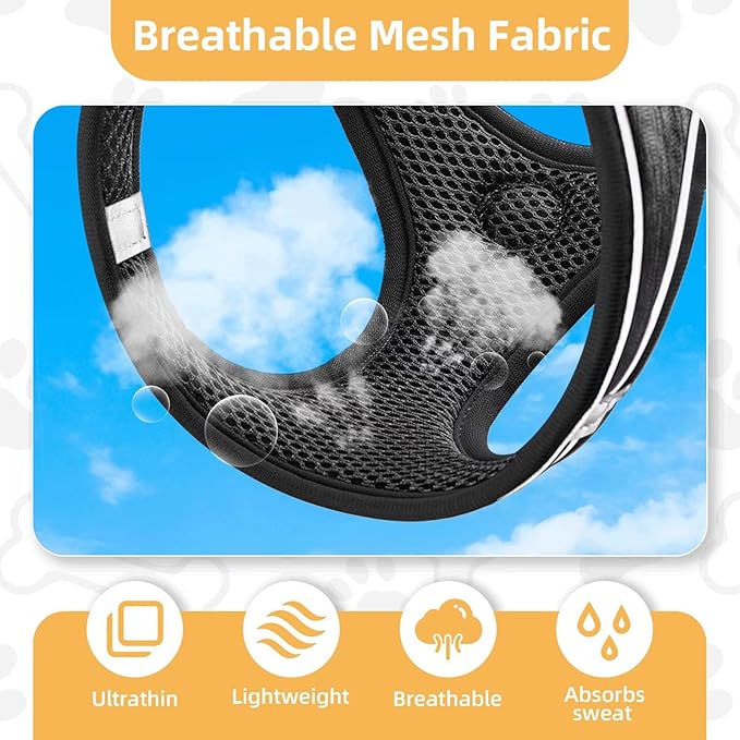 • 🐕‍🦺No Pull, No Choke Dog Harness --- The double fixing method of hook and loop fastener and buckle, the sturdy double D ring provides you with two choices of traction for safer dog walks. its vest-like design distributes the pressure of the leash evenly across the chest and shoulders to prevent choking or neck strain, perfect for dog training or dogs who tend to pull.