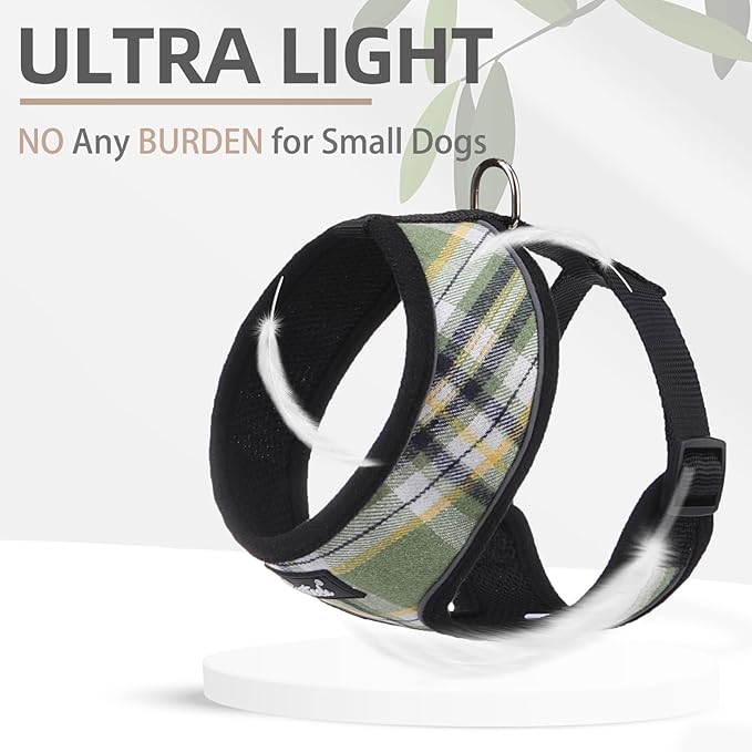 • DIFFERENT DESIGN: The harness is adopted with a plaid pattern which is designed by our internal brand team, so it's unique and very different from other normal harnesses. This plaid pattern looks both classic and stylish and is never out of date. It's great for everyday walking or going to a holiday party. It makes your furry friend look so lively and cute