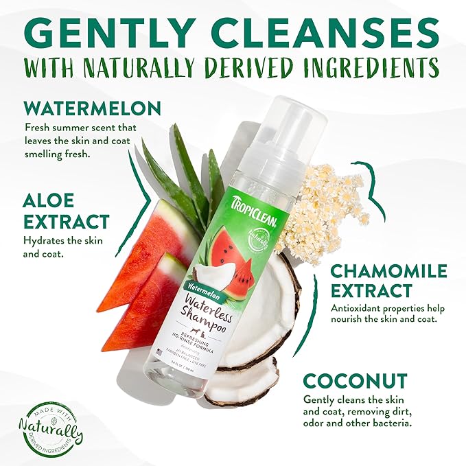 TropiClean Watermelon Waterless Shampoo | Dry Shampoo for Cats & Dogs | Cat & Dog Bath Supplies 7.4 oz | Made in The USA