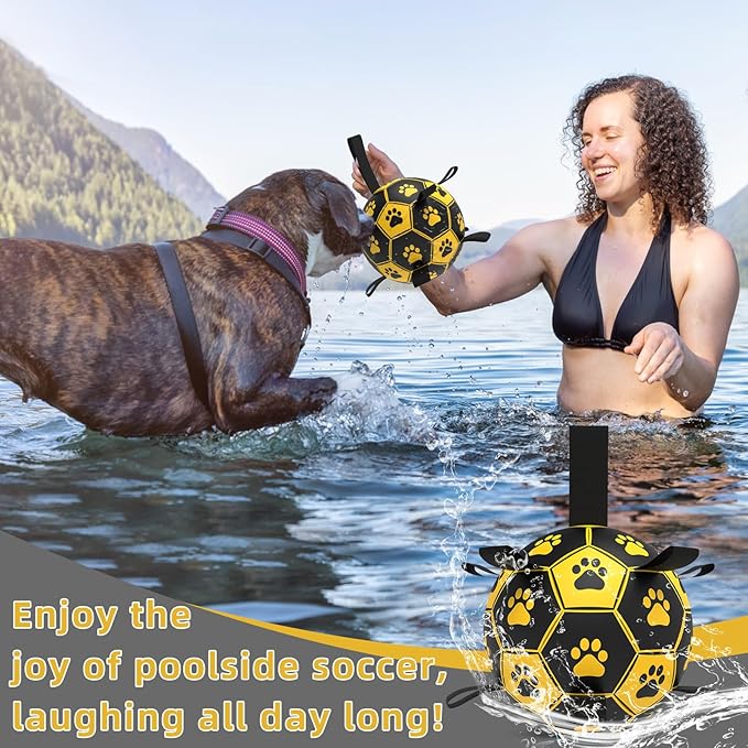 • ⚽Unique Dog Water Toys: Our dog pool toys are the perfect choice for active play at the pool/beach, ensuring long-lasting entertainment for your furry friend with nylon tabs sewn evenly into the seams not only create an erratic bounce that dogs love to chase, but also make it easier for the dogs to fetch, toss, tug and retrieve.