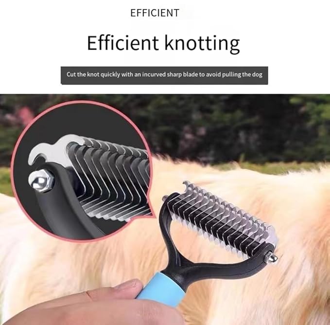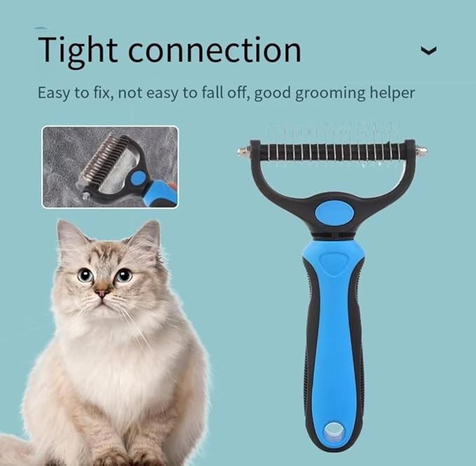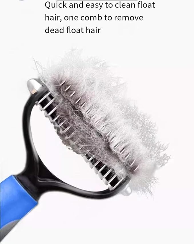 • 1. Dual-Sided Design for Effective Grooming One side features 9 sturdy stainless steel teeth to tackle stubborn mats and tangles, while the 17-tooth side gently thins and removes loose fur, ensuring a pain-free grooming experience for pets.
