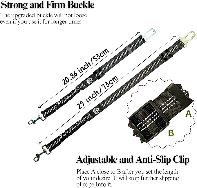• [Adjustable length]: As the pet weighs differently, so does the leash, which has an adjustable and extendable length depending upon your needs to keep your pet safe using seat belt inside the car.