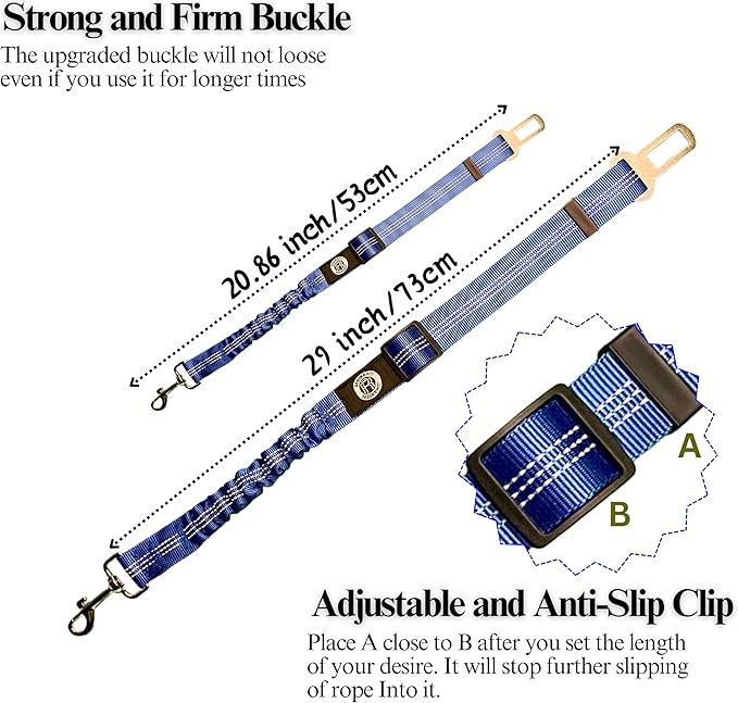 • [Adjustable length]: As the pet weighs differently, so does the leash, which has an adjustable and extendable length depending upon your needs to keep your pet safe using seat belt inside the car.