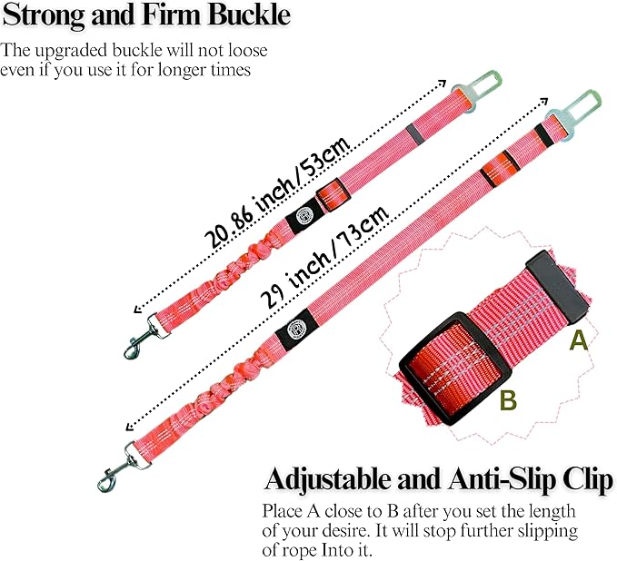 • [Adjustable length]: As the pet weighs differently, so does the leash, which has an adjustable and extendable length depending upon your needs to keep your pet safe using seat belt inside the car.