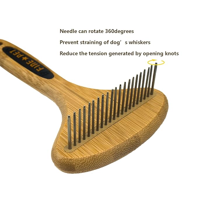 • Single row stainless steel needle design, the needle can rotate 360 ​degrees to reduce coat pulling and will not damage the coat or harm your pet.Reduce the tension generated when tying knots and effectively open knots.This is a very gentle experience for your dog.