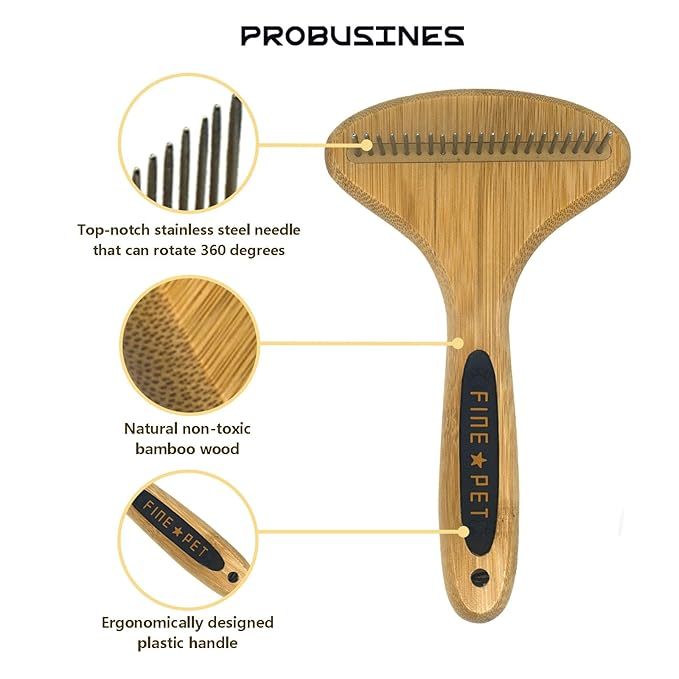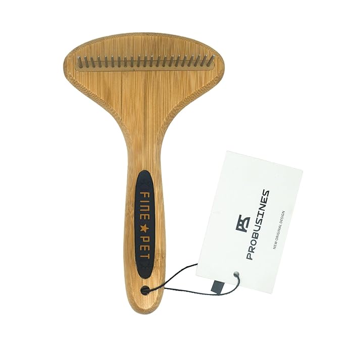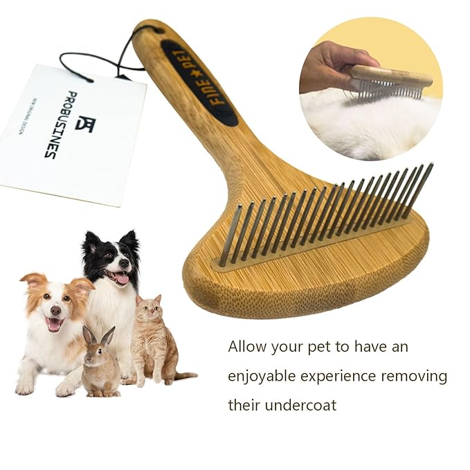 PROBUSINES-Bamboo Pet Brush, Dog Dehairing Rake - Knot Detangling For Dogs, Cats, Any Long-Haired Pet Breed - Undercoat Rake For Shedding And Gooming
