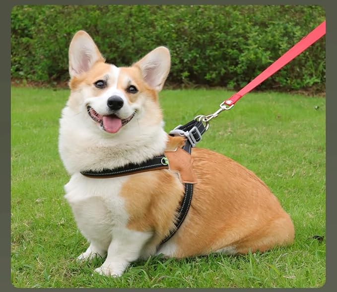 • EASY TO PUT ON AND TAKE OFF Unfold the Dog Harness slightly smaller side for the neck, the larger side for the chest, the Dog Harness into the corresponding direction of the dog, the two sides of the security buckle fasten, quickly and quickly unlock the security buckle to quickly take off the Dog Harness for dogs, easy to wear wear