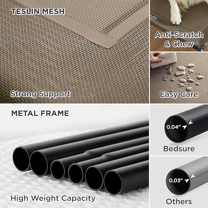 • Strong & Durable: Heavy-duty Teslin mesh holds up against scratching and chewing, providing excellent support and even pressure distribution to reduce joint and muscle pain. The strength-tested lightweight metal frame supports dogs up to 75 lbs.