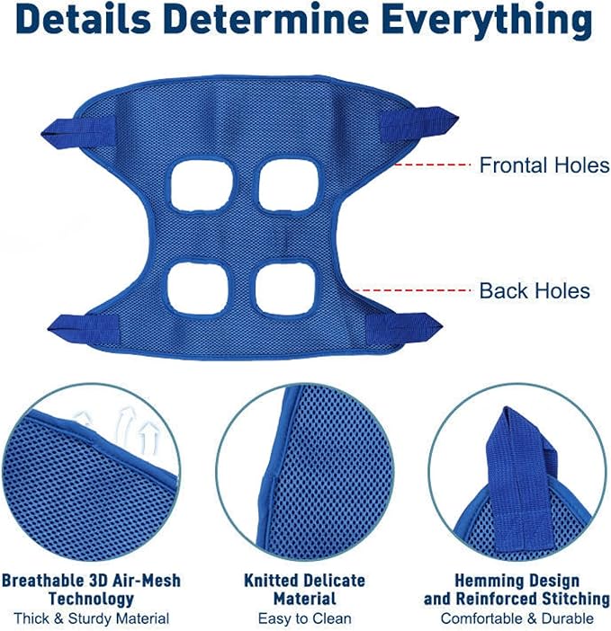 • Easy to use & clean: Simply place pet legs in holes, connect D-ring belt to harness with carabiner, and machine wash