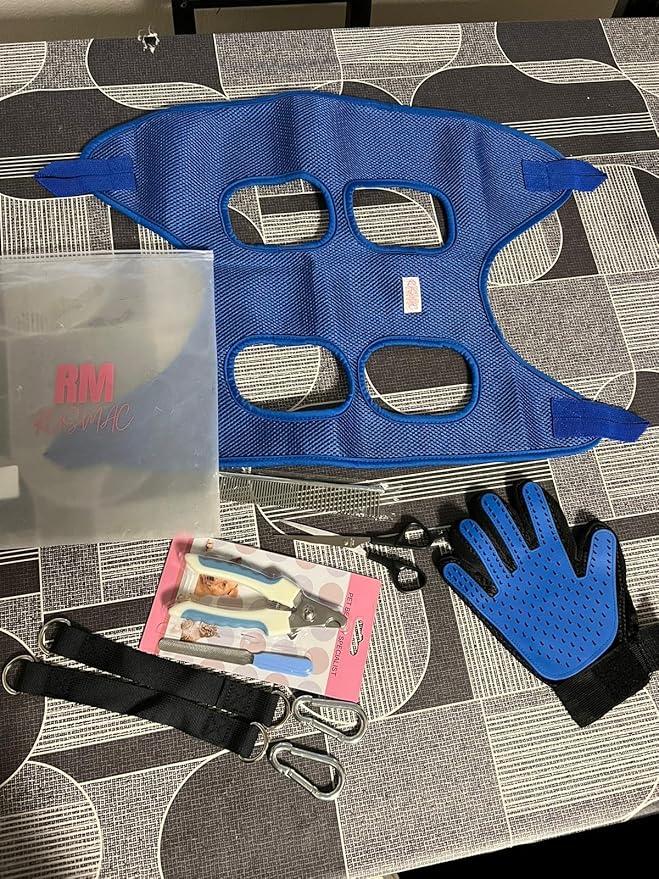 • Complete pet care kit: Includes harness, clipper kit, comb, scissors, grooming glove, straps, and carabiners