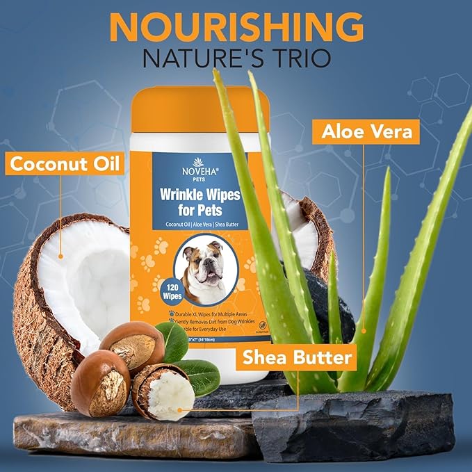 • 🐾 NATURALLY HEALTHY PET SKIN - Aloe Vera and Coconut Oil in NOVEHA Wrinkle Cloths promote hydrated, soothing care for your dog’s skin.
