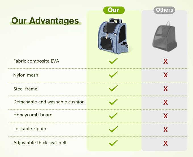 - [Premium Materials]: Our dog backpack is made of Oxford fabric and 210D backing, scratch-resistant and wear-resistant. The internal steel wire frame ensures stability and prevents collapsing. The bottom of the cat travel bag is made of different materials on both sides, one side for keeping warm and the other for cool, flexible to use with the temperature change, and the easy disassembly is more convenient for cleaning.