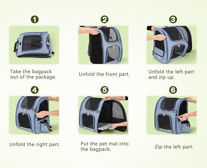 - [Warm reminder]: When the pet enters the bag, in order to prevent the pet from escaping halfway, please attach a clip-on safety rope to the pet collar to prevent escape, and lock all self-locking zippers on the backpack.